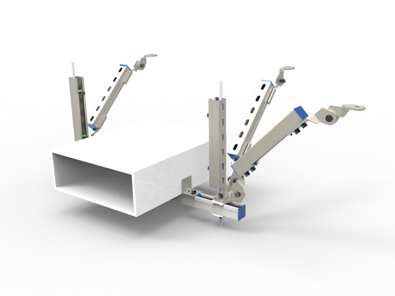 根據(jù)橋架的外形,選擇對應(yīng)的抗震支吊架來進(jìn)行安裝,安裝的步驟主要包括:測量、錨栓定位→切料→主吊的安裝→橫粱的安裝→側(cè)向、縱向支撐的安裝→加勁裝置的安裝