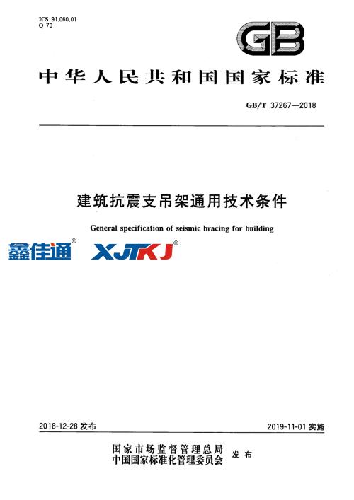 2018年12月28日發(fā)布,2019年11月1日實(shí)施的《(GB/T37267-2018)建筑抗震支吊架通用技術(shù)條件》。