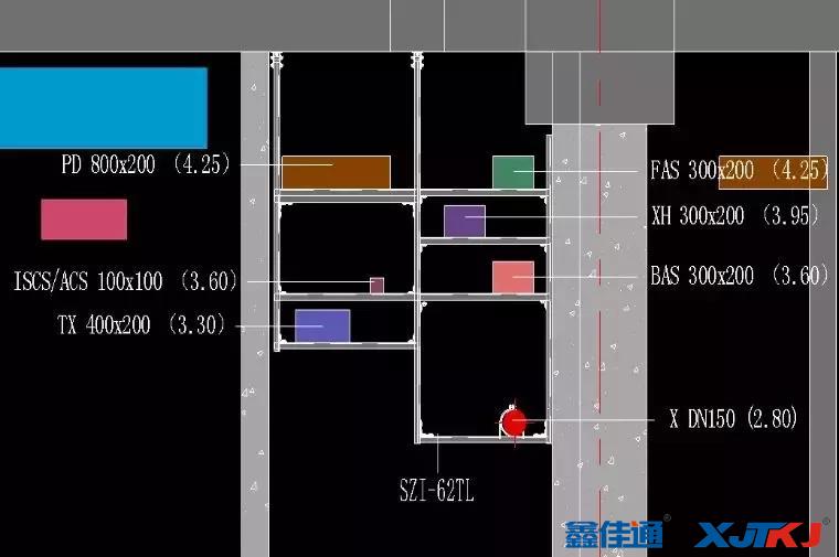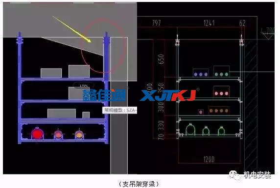 綜合成品支吊架的定位依據(jù)是廠家深化圖中的平面圖,優(yōu)先定位水平位置,再根據(jù)標高定位垂直方向。
