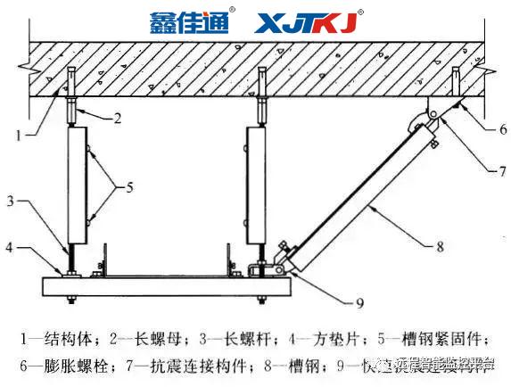 抗震支吊架是用于支承水管、風管、橋架等機電管線設(shè)備并提供抗震支撐的支吊架產(chǎn)品。定義:與建筑結(jié)構(gòu)體牢固連接,以地震力為主要荷載的抗震支撐設(shè)施。由錨固體、加固吊桿、抗震連接構(gòu)件及抗震斜撐組成。