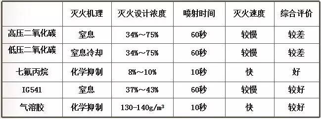 工程應用時,應綜合考慮:滅火可靠性、環(huán)保性、對設備和人員的安全性、工程造價、技術成熟性等因素,選擇最佳的滅火系統。
