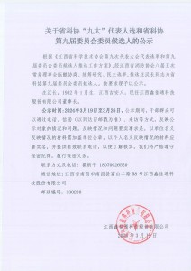 關(guān)于省科協(xié)“九大”代表人選和省科協(xié)第九屆委員會(huì)委員候選人的公示