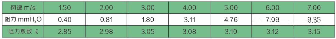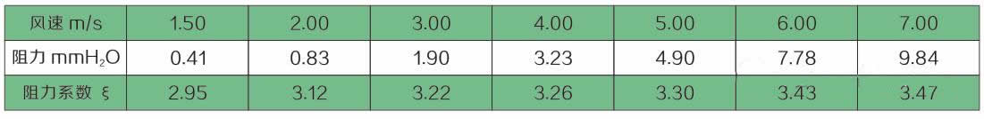 4.2、干工況阻力性能測試表