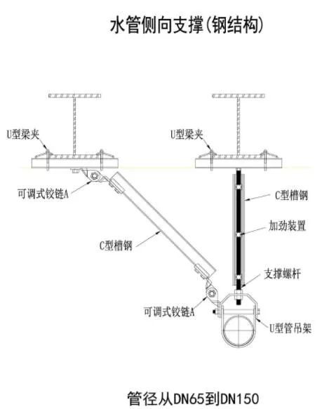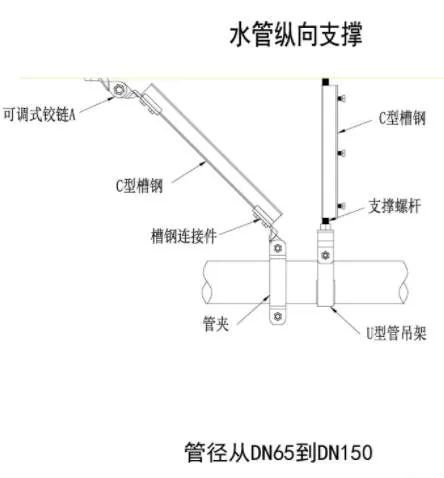 2、管道兩端設置側(cè)向抗震支撐,抗震支撐間距超過最大設計間距時,應在中間增設抗震支撐。