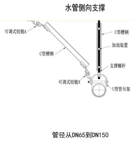 3、水平管線在轉(zhuǎn)彎處0.6m范圍內(nèi)須設置側(cè)向抗震支撐。
