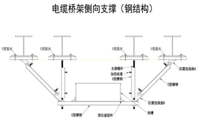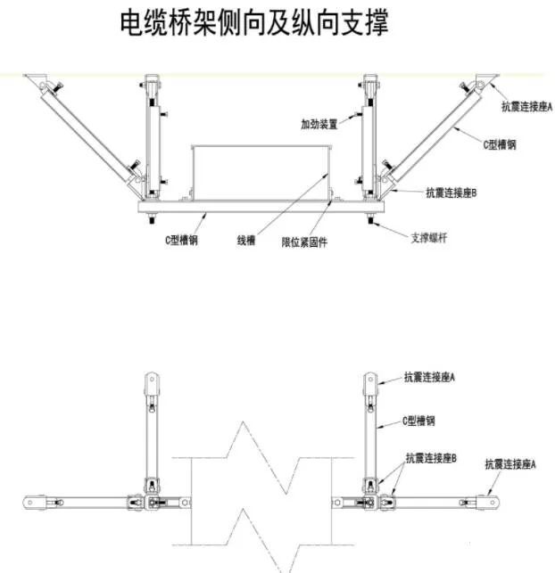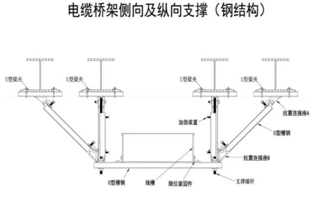2、橋架兩端設置側(cè)向抗震支撐,抗震支撐間距超過最大設計間距時,應在中間增設抗震支撐。