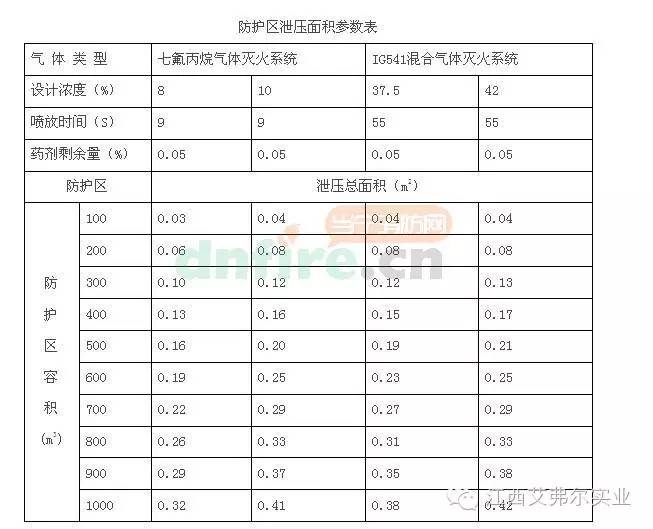 (2)將防護(hù)區(qū)容積和保護(hù)對(duì)象的滅火設(shè)計(jì)濃度帶入本表中,便可快捷查得防護(hù)區(qū)的總泄壓面積。