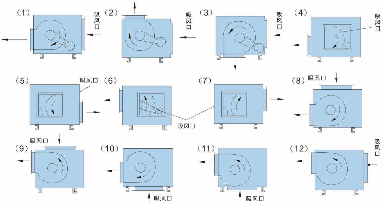 HTFC消防通風(fēng)柜式離心風(fēng)機進出風(fēng)口位置編號表