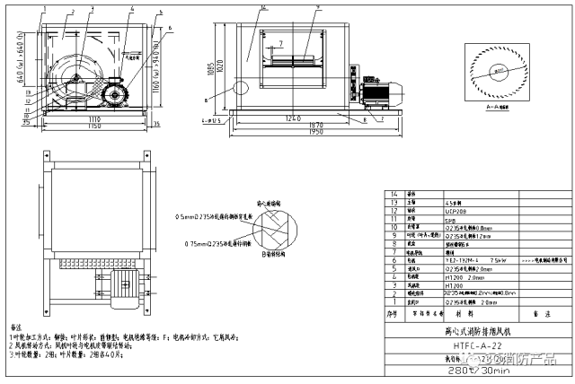 消防排煙風機產品圖紙的其他要求: