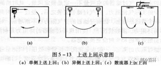 由空間上部送入空氣由下部排出的“上送下回”送風(fēng)形式是傳統(tǒng)的基本方式。上送下回的氣流分布形式送風(fēng)氣流不直接進(jìn)入工作區(qū),有較長的與室內(nèi)空氣混摻的距離,能夠形成比較均勻的溫度場(chǎng)和速度場(chǎng)。