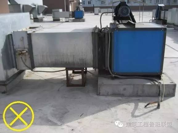 2、露天風(fēng)機(jī)電源管沒有防水彎,金屬軟管超過80cm長;