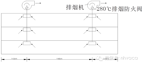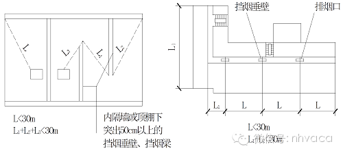 2.防區(qū)內(nèi)任何地點(diǎn)到排煙口水平距離小于30m,如下圖所示。