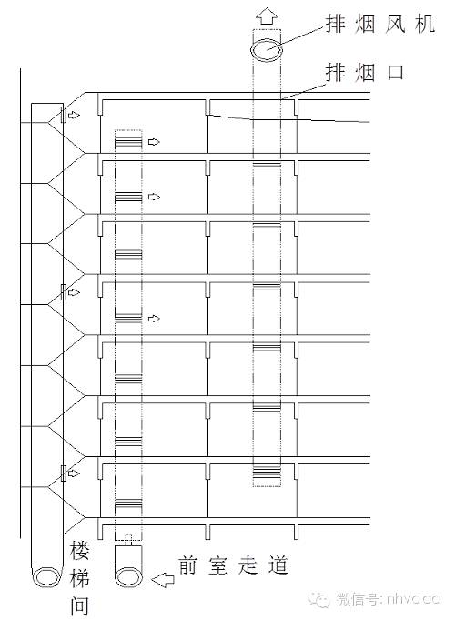 對高層的建筑來說,可采用專用的通風(fēng)排煙豎井。