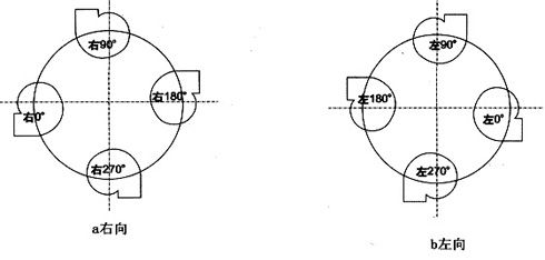 本系列風機分為A式直聯(lián)傳動和E式皮帶傳動,按葉輪旋轉(zhuǎn)方向為左旋和右旋,旋轉(zhuǎn)方向從電機或皮帶輪側(cè)看為準,以出風口分為0 °、90 °、180 °、270 °四種出風方式,訂貨時需注明。