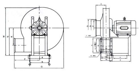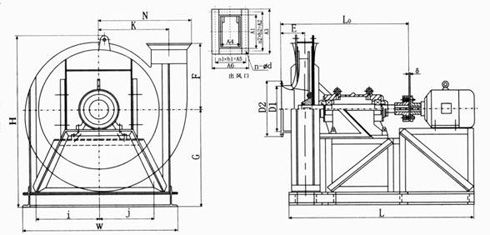 9-19、9-26系列高壓離心通風(fēng)機(jī)為單吸入式,有No.4-16共13個機(jī)號.其中No:4-6:3傳動方式為A式傳動,No.7.1-16傳動方式為D式傳動